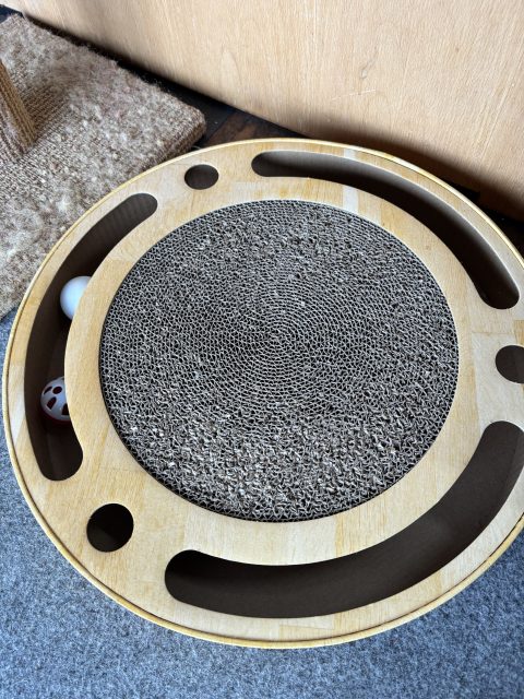 爪とぎ兼ボール遊び✨ボールがつかまえられず悔しそうです(笑)
