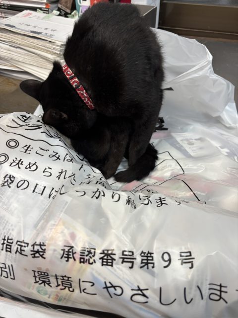 ゴミ袋に絡む、です(笑)ほぼ毎日です(笑)