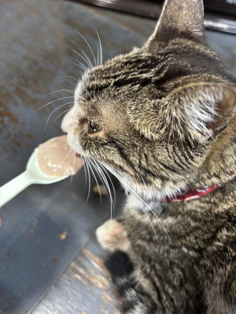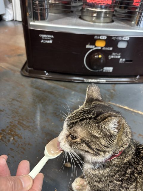 社長がスプーンでご飯をあげると嬉しそうに食べます(^^)/