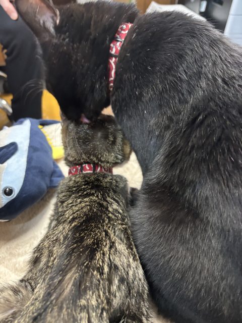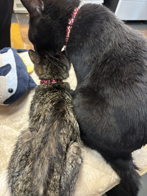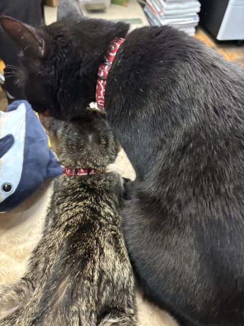 ジジの小春への毛繕いタイムです✨