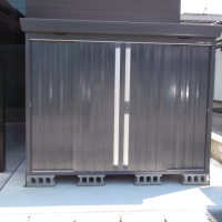 ▼リクシルフェンスABで、しっかり目隠ししながら風通しもよいタイプです。写真は、敷地内部側の面です。