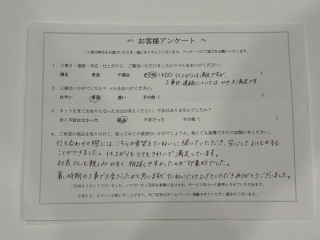 **「安心してお任せできた」**とのお言葉をいただき、スタッフ一同大変うれしく思っております。